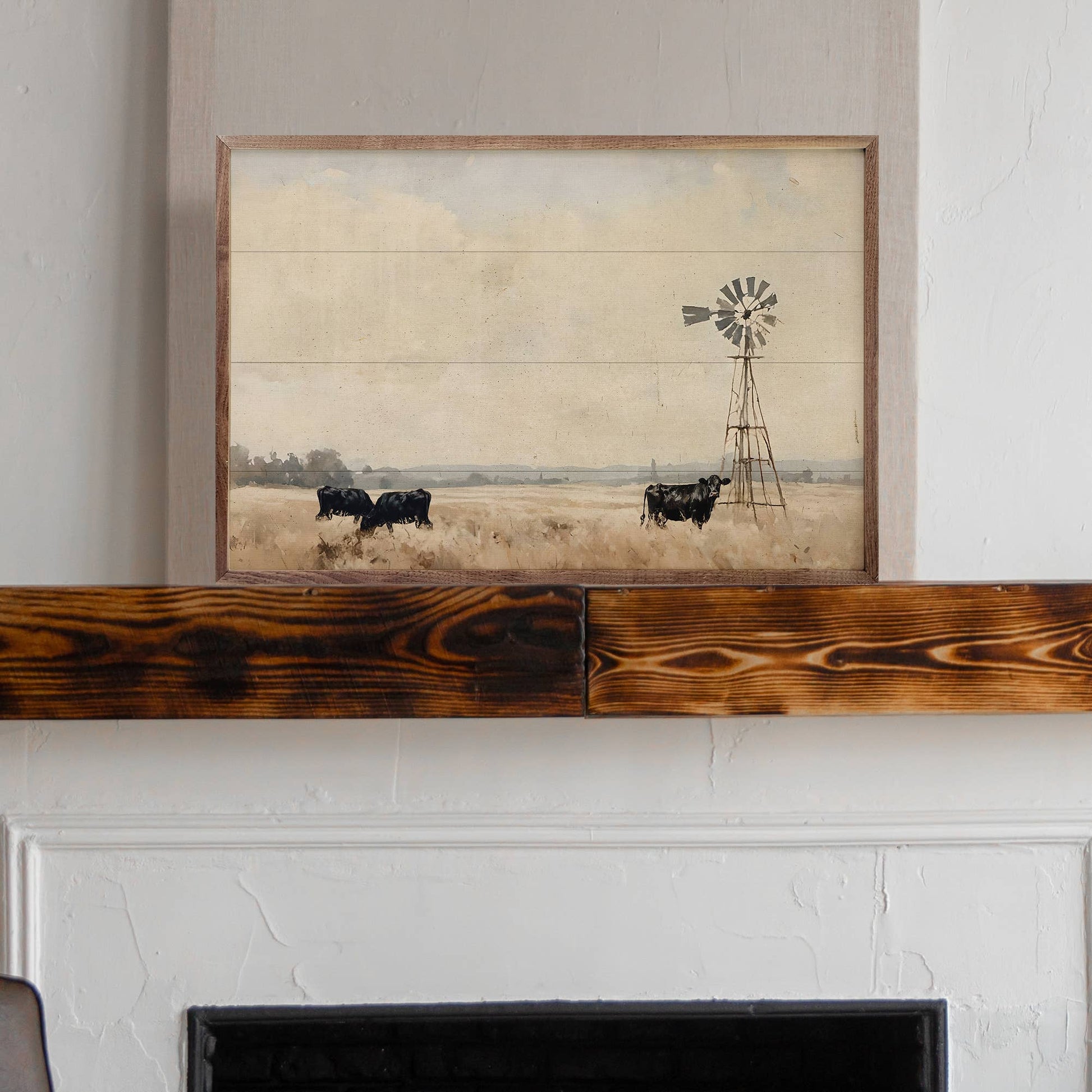 Featuring a solid wood insert with intricate, rustic farm-inspired designs, this piece is framed in rich walnut to showcase the natural wood grain. Its charming craftsmanship and down-to-earth appeal make it a perfect addition to any farmhouse décor, offering timeless style and quality.