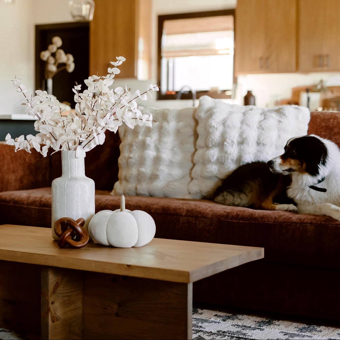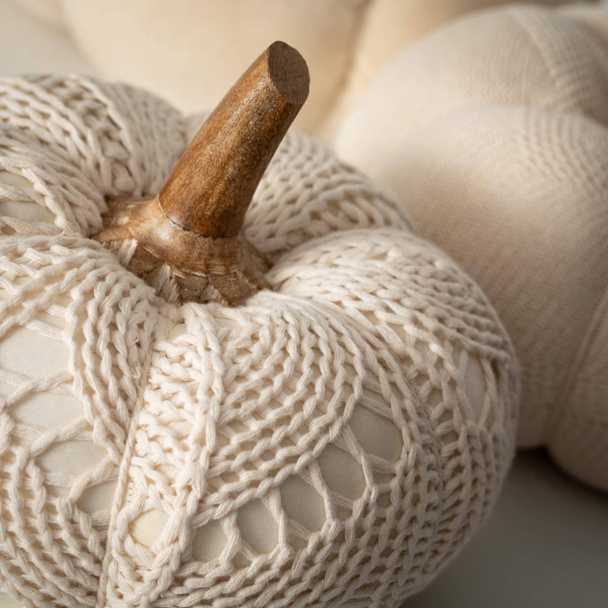 Add a touch of bohemian charm to your autumn decor with this plush pumpkin trio from Sullivans Home Decor. Perfect for welcoming guests to your modern and welcoming home, the pumpkins come in three varying sizes-from subtle to stately-for a layered look that's effortlessly natural and neutral. Their organic textures and cream hues will infuse your space with the relaxed spirit of the season even as nights grow longer. Best of all, with no assembly required, this trio is ready to cozy up your space from the moment you bring them inside. Scandi style has never been so easy to achieve. -Dimensions: 9"L x9"W x7.75", 8"L x8"W x6.25", 8"L x8"W x6.25" Sold ASST Individual