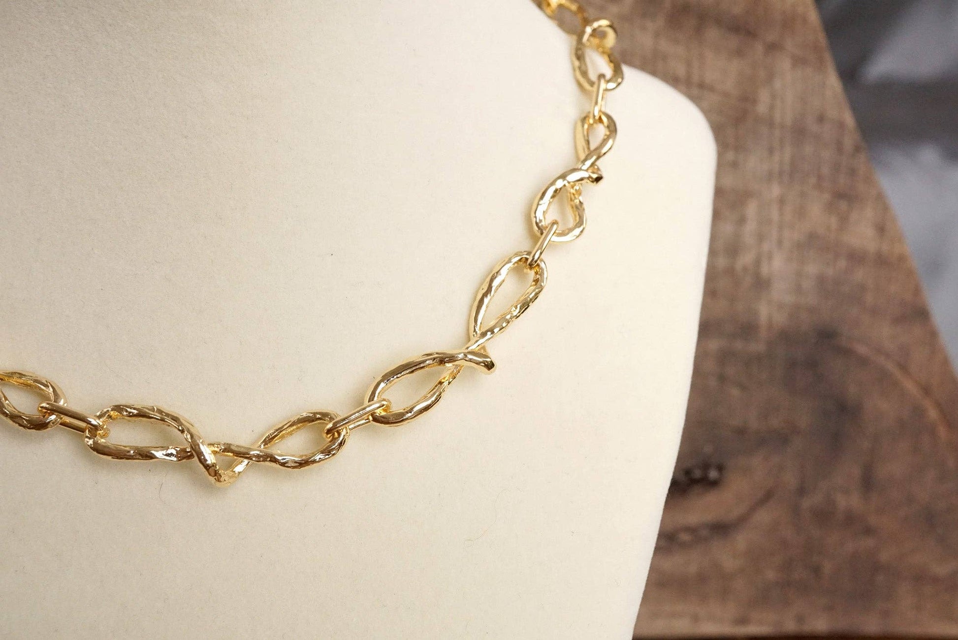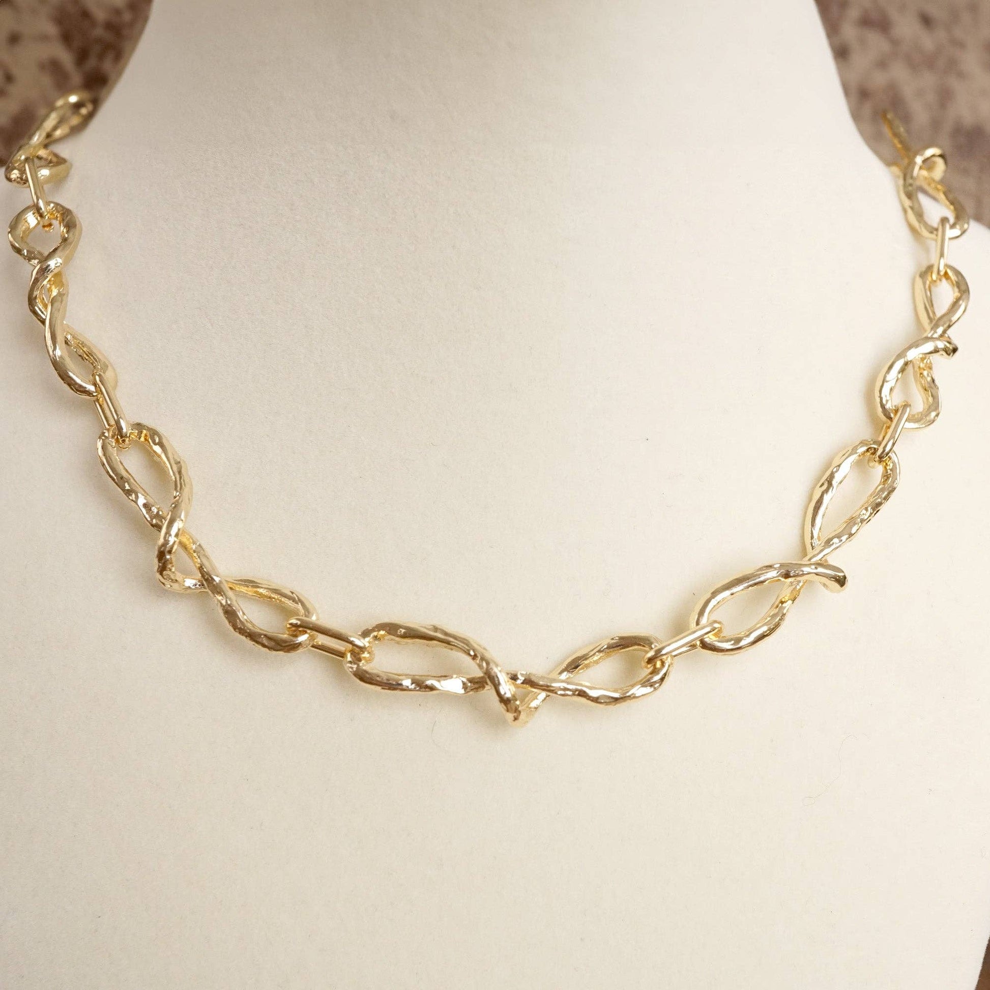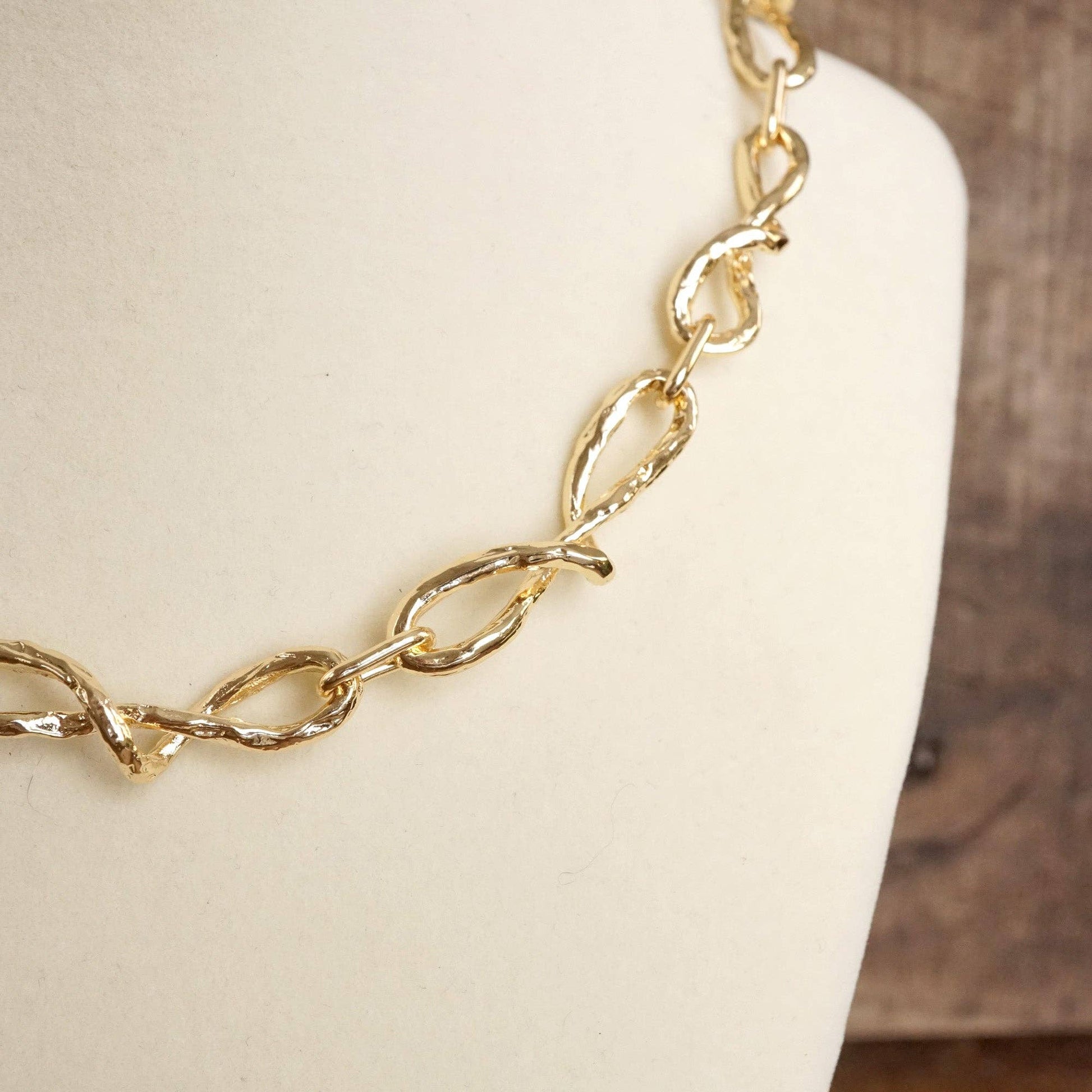 Boho Necklace – Raw Twisted Link Chain in Gold Tone