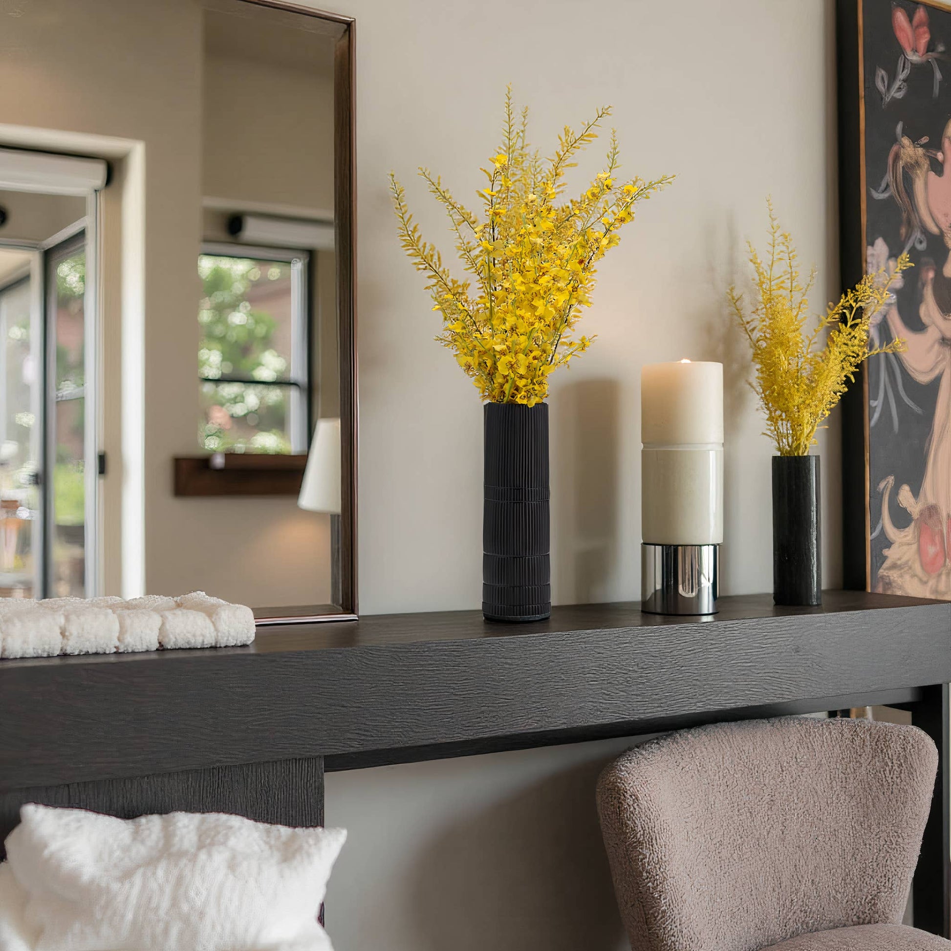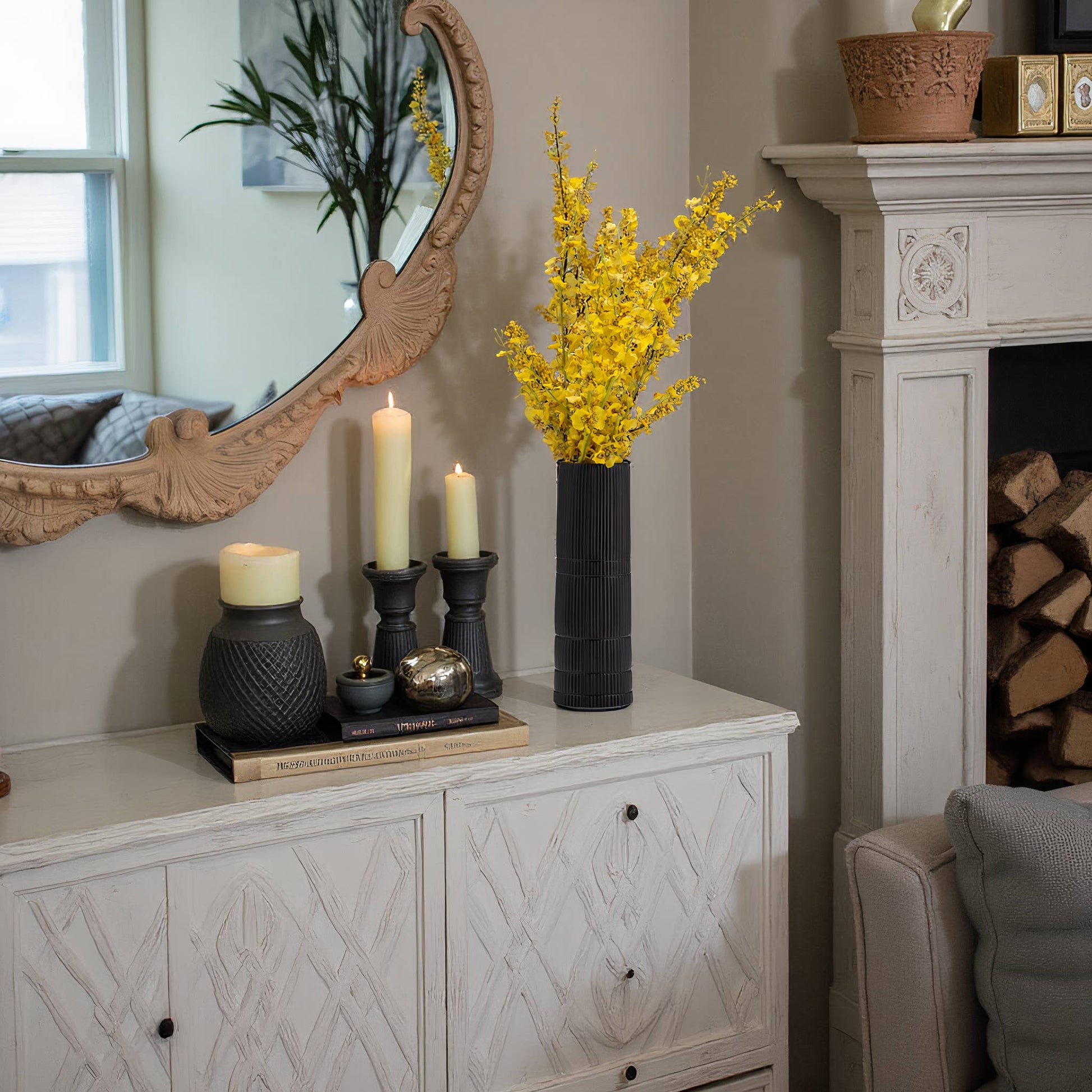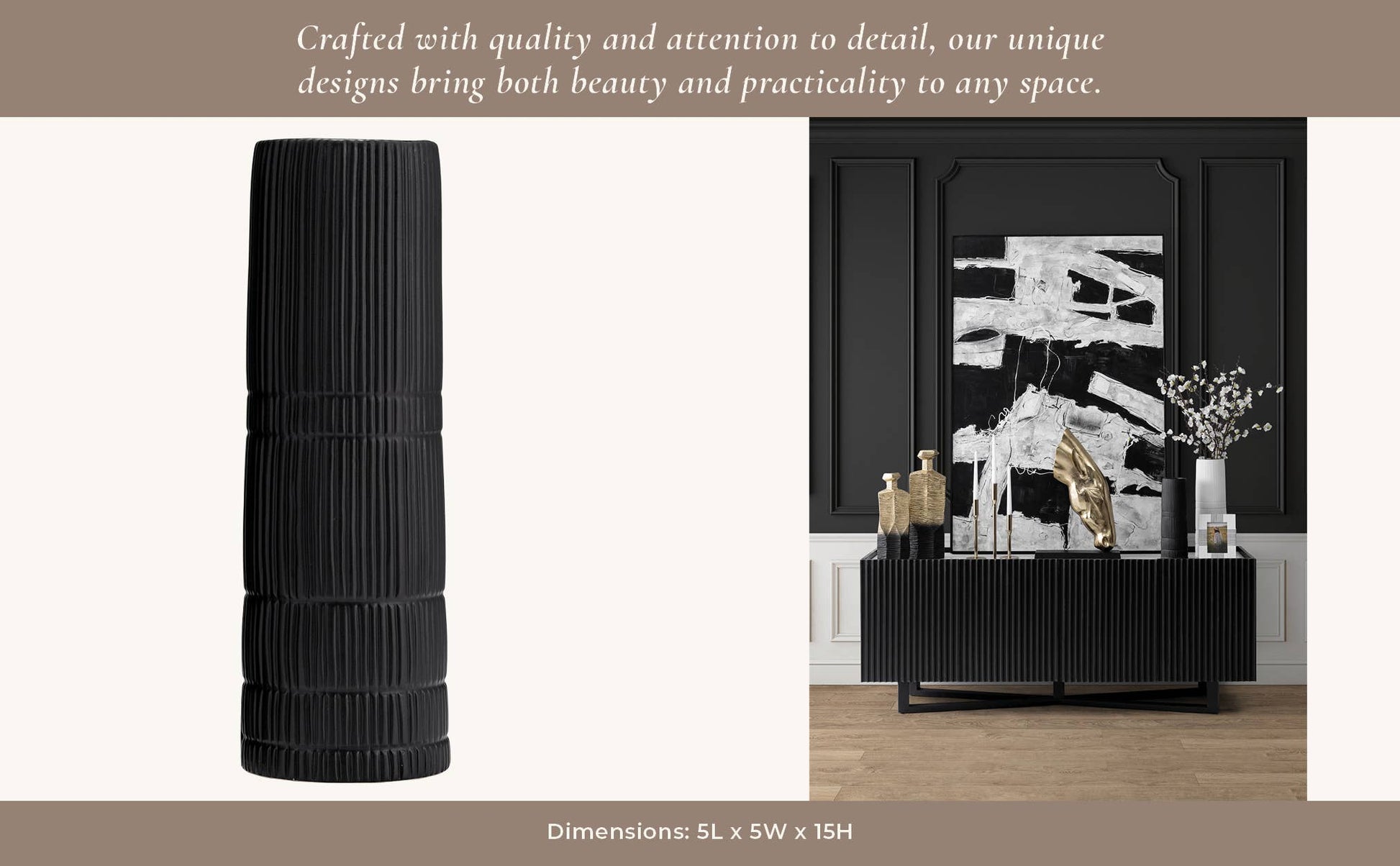 Ceramic Lined Textured Design Cylinder Vase - Black, 15 in.