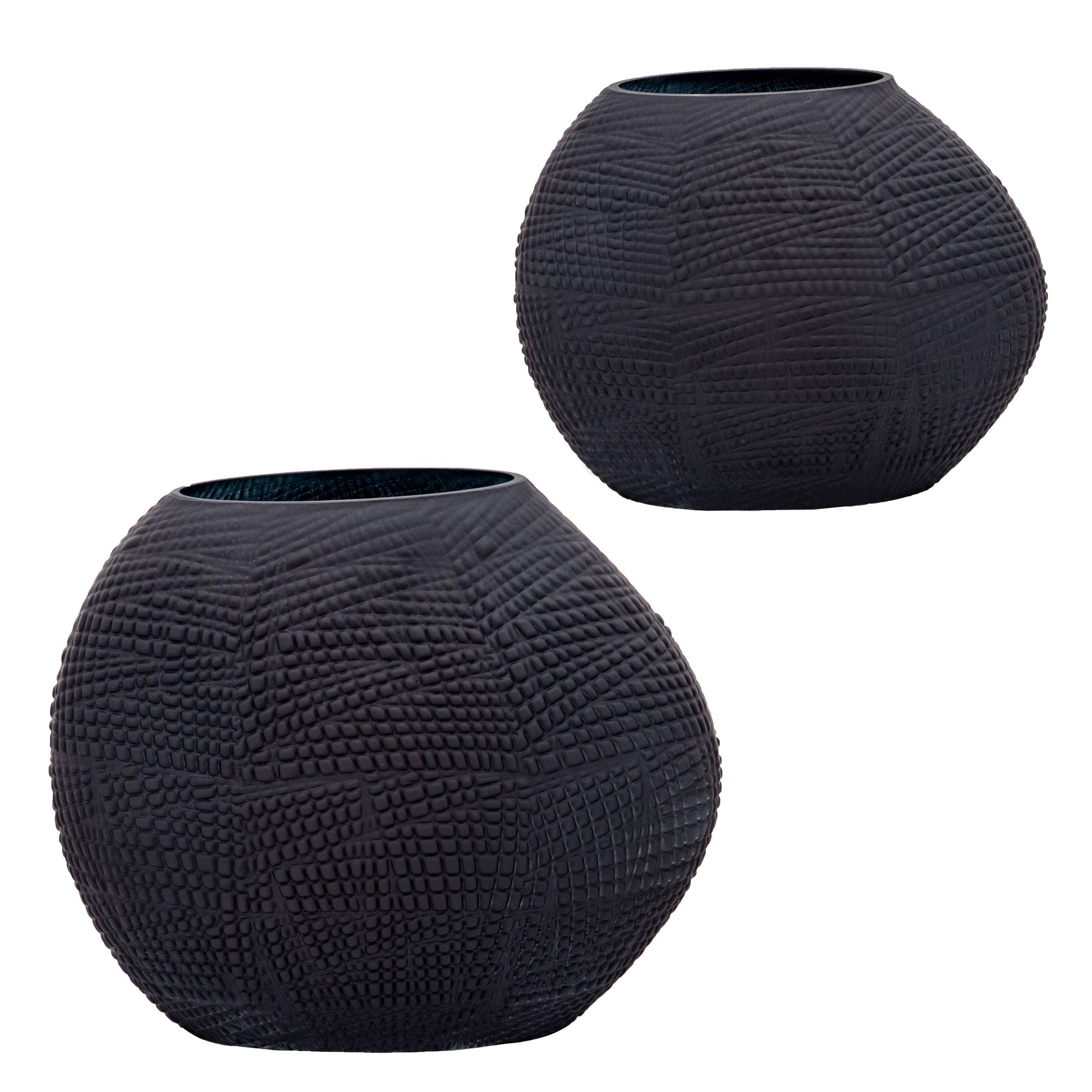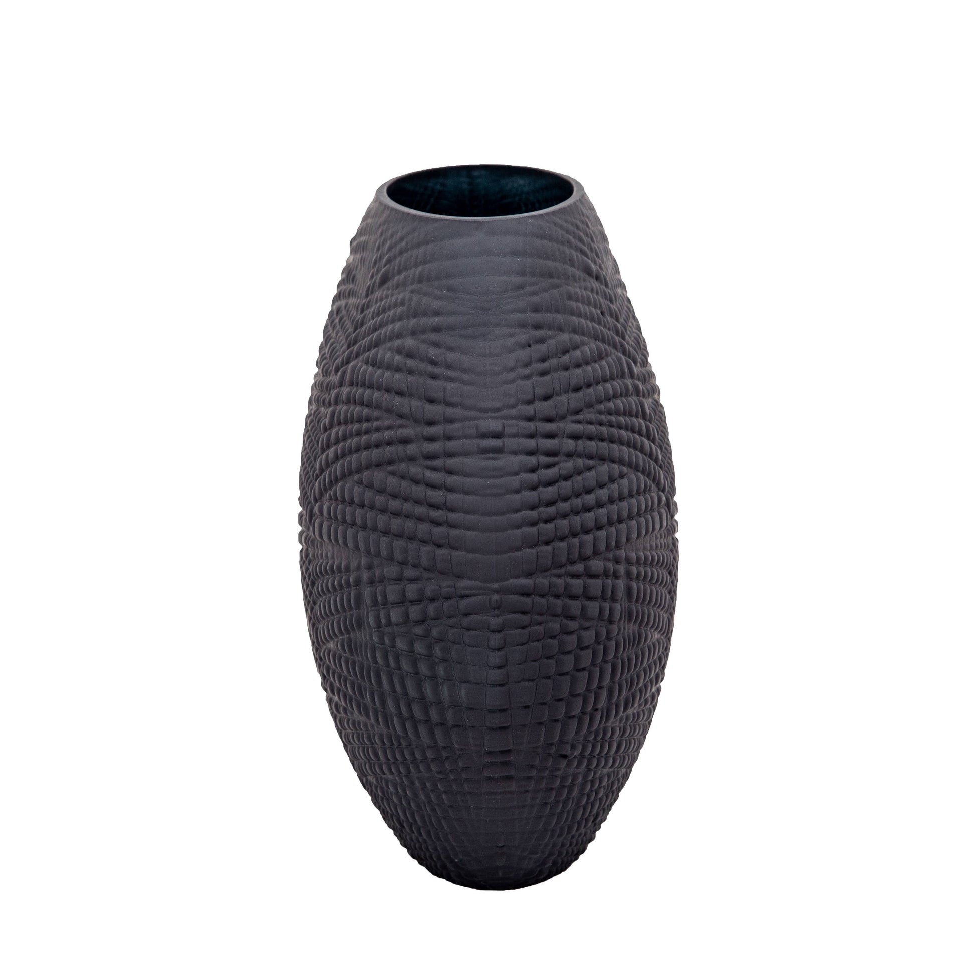 Glass Textured Vase with Sculpted Surface - Black, 10 in.