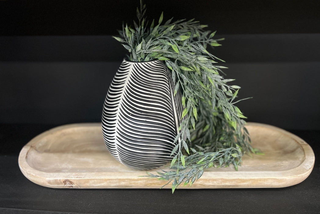 white Washed Wooden Oval Tray 24x8x1in
